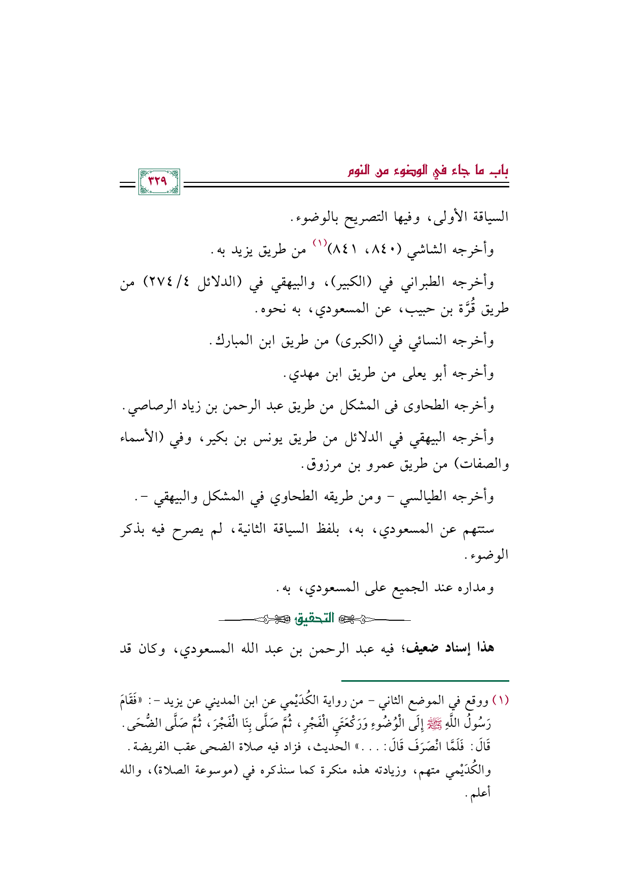 ستتهم عن المسعودي، به، بلفظ السياقة الثانية، لم يصرح فيه بذكر الوضوء.