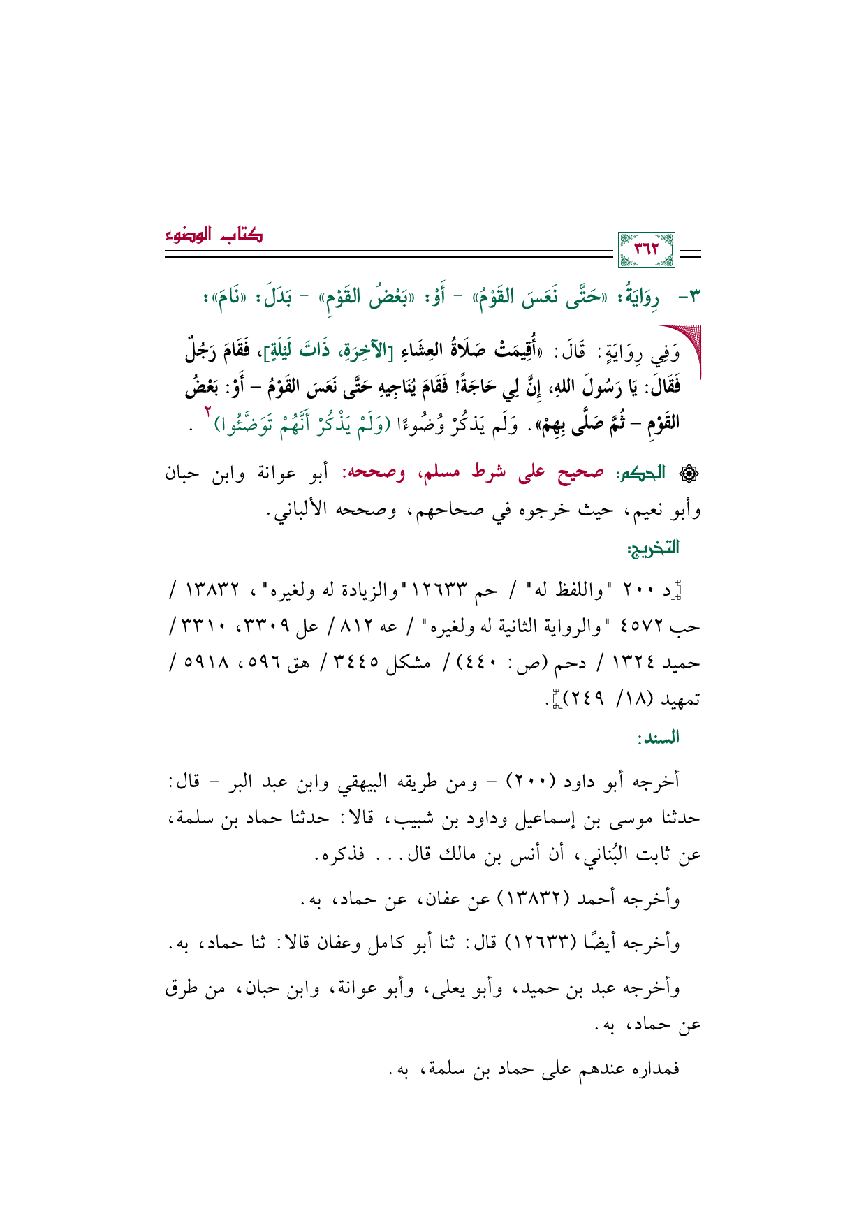أخرجه أبو داود (٢٠٠) -ومن طريقه البيهقي وابن عبد البر- قال: حدثنا موسى بن إسماعيل وداود بن شبيب، قالا: حدثنا حماد بن سلمة، عن ثابت البُناني، أن أنس بن مالك قال ... فذكره.