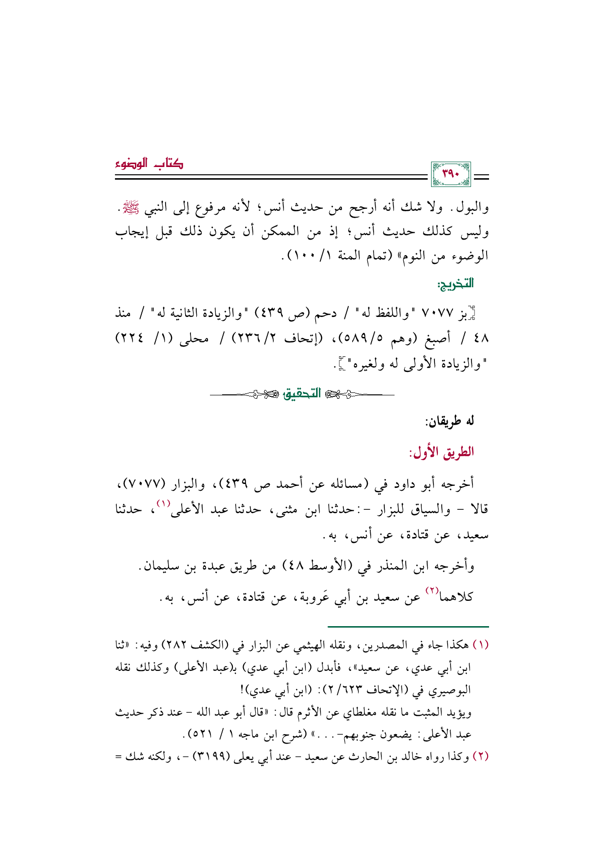 [بز ٧٠٧٧ "واللفظ له" / دحم (ص ٤٣٩) "والزيادة الثانية له" / منذ ٤٨ / أصبغ (وهم ٥/ ٥٨٩)، (إتحاف ٢/ ٢٣٦) / محلى (١/ ٢٢٤) "والزيادة الأولى له ولغيره"].