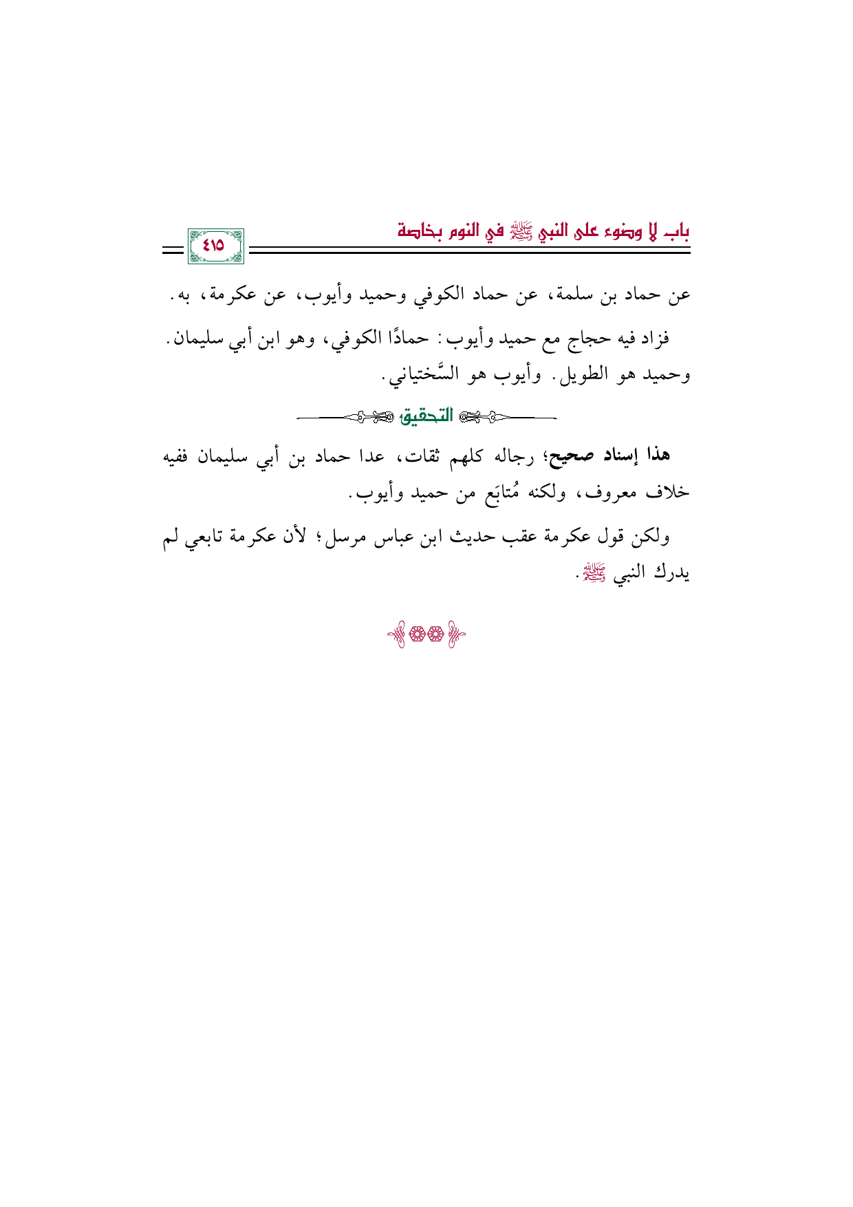 ولكن قول عكرمة عقب حديث ابن عباس مرسل؛ لأن عكرمة تابعي لم يدرك النبي صلى الله عليه وسلم.