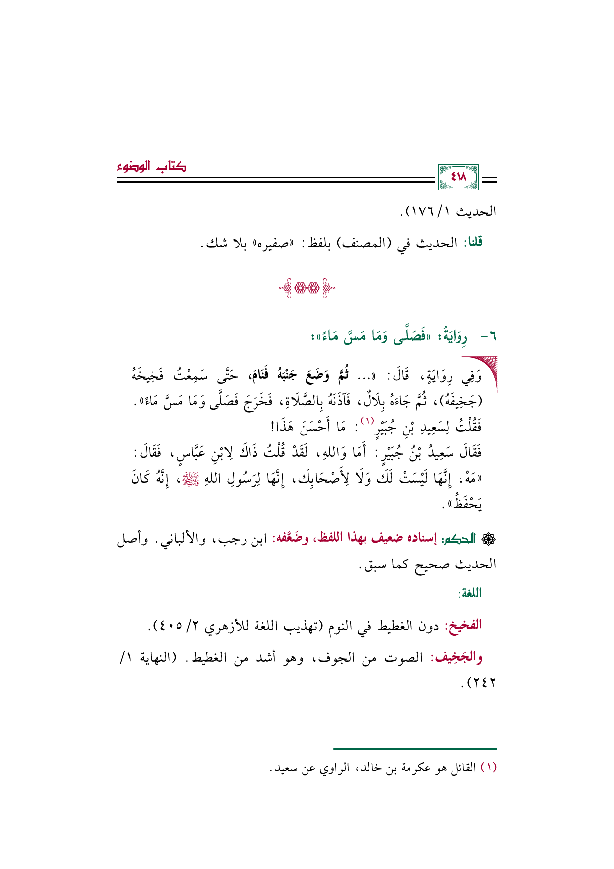 * الفخيخ: دون الغطيط في النوم (تهذيب اللغة للأزهري ٢/ ٤٠٥).