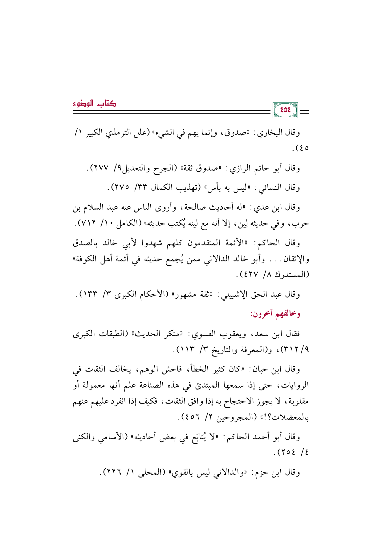 وقال ابن حزم: ((والدالاني ليس بالقوي)) (المحلى ١/ ٢٢٦).