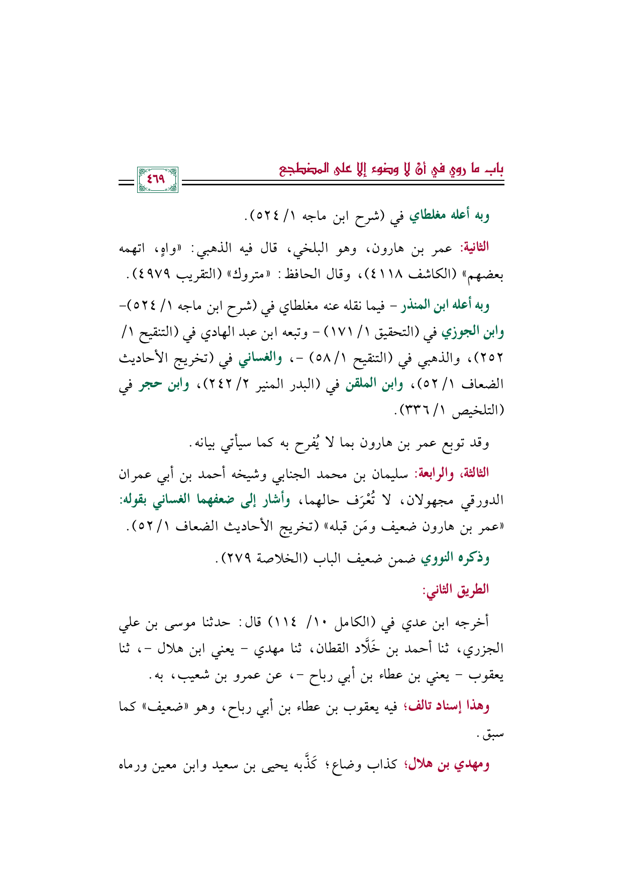 وبه أعله مغلطاي في (شرح ابن ماجه ١/ ٥٢٤).