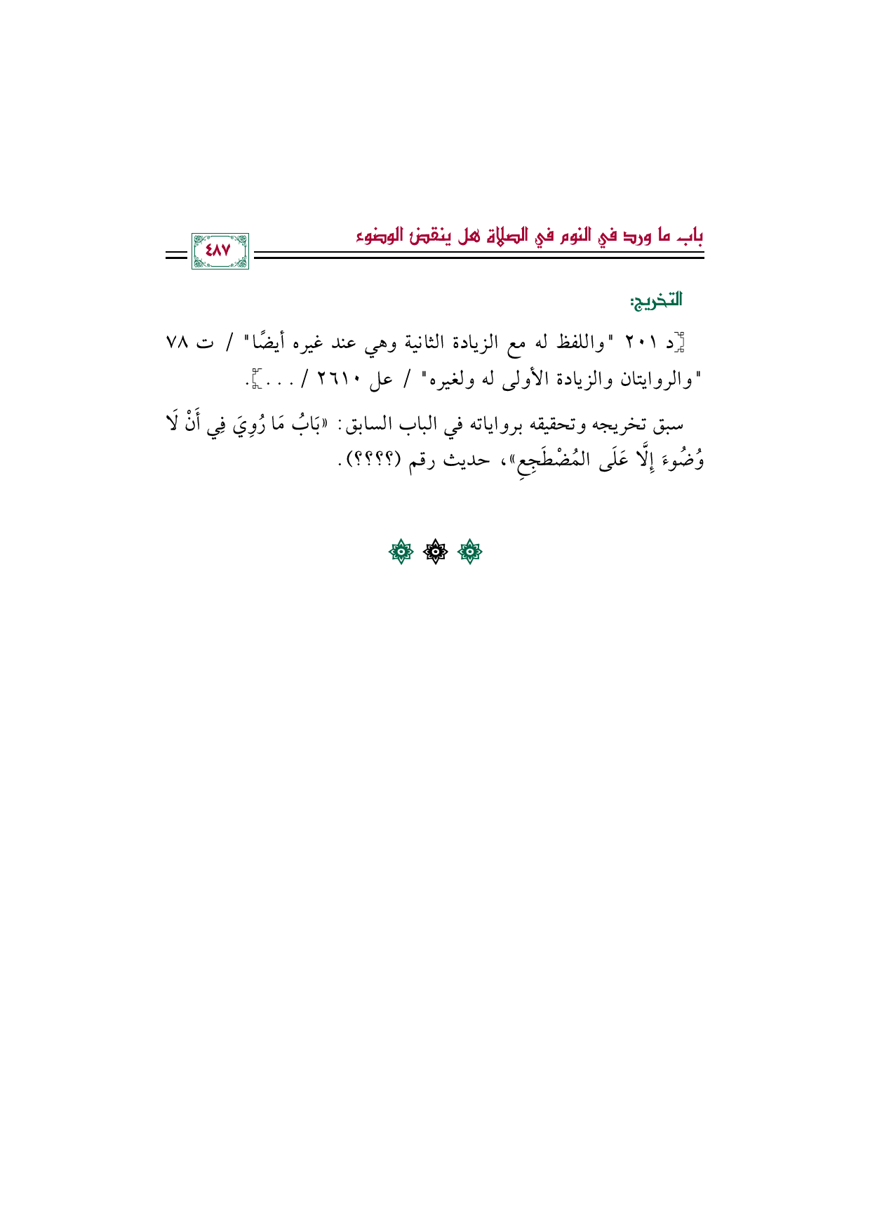 سبق تخريجه وتحقيقه برواياته في الباب السابق: "بَابُ مَا رُوِيَ فِي أَنْ لَا وُضُوءَ إِلَّا عَلَى المُضْطَجِعِ "، حديث رقم (؟ ؟ ؟ ؟ ؟ ).