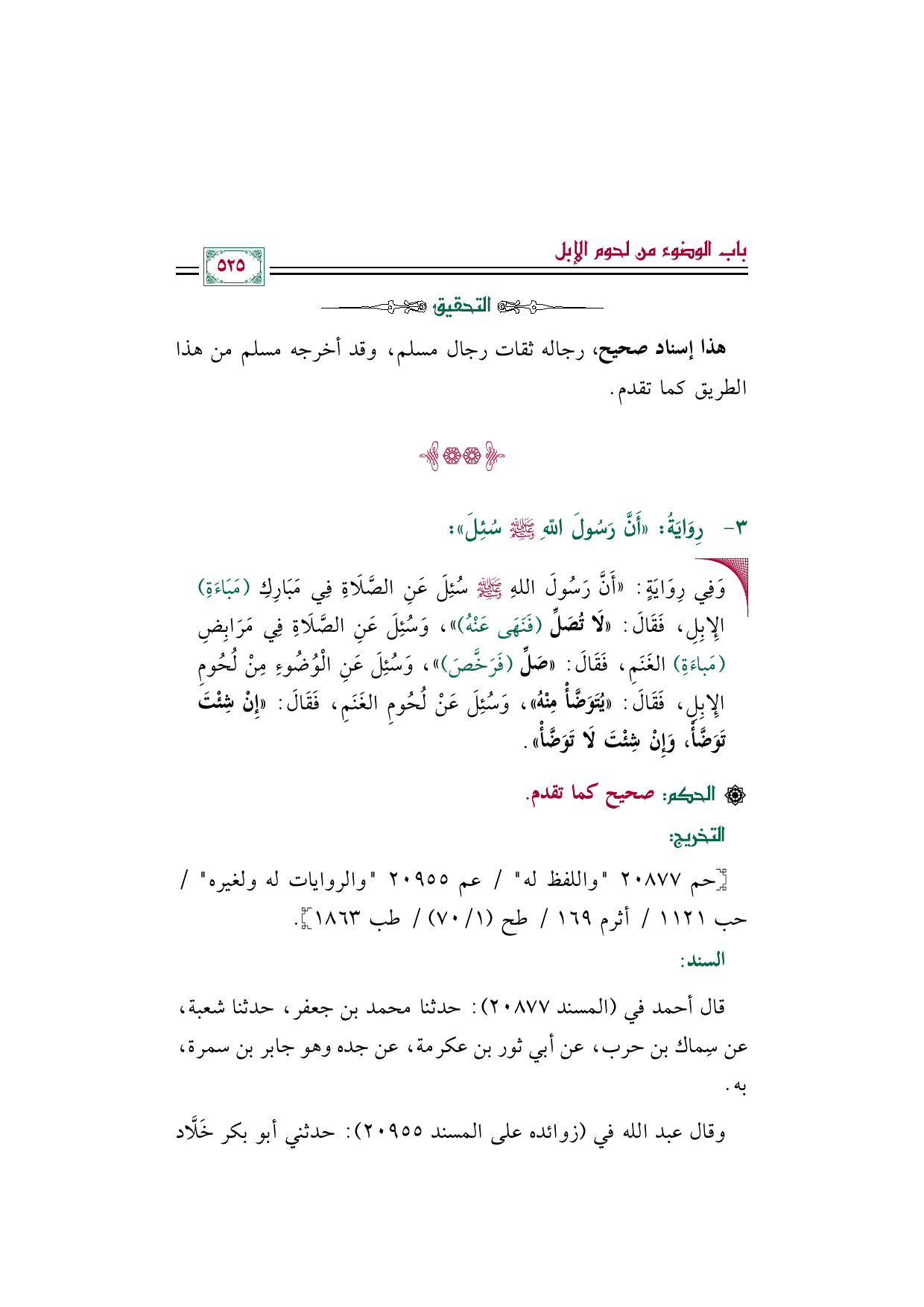 [التخريج]:[حم ٢٠٨٧٧ واللفظ له / عم ٢٠٩٥٥ والروايات له ولغيره / حب ١١٢١ / أثرم ١٦٩ / طح (١/ ٧٠) / طب ١٨٦٣].