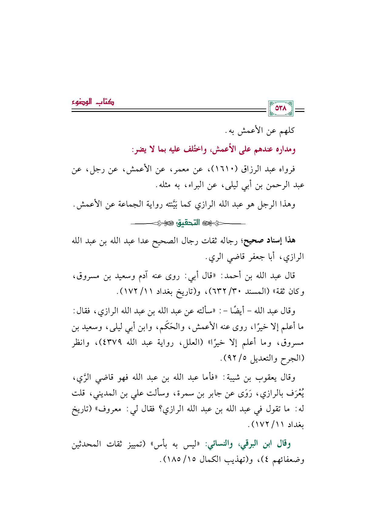وهذا الرجل هو عبد الله الرازي كما بَيَّنته رواية الجماعة عن الأعمش.