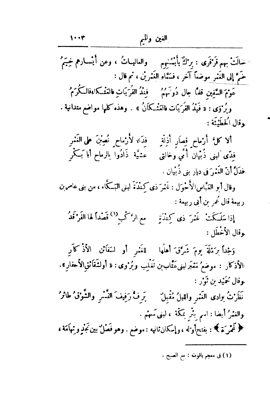فدلّ أنّ الغمر فى ديار بنى ذبيان.