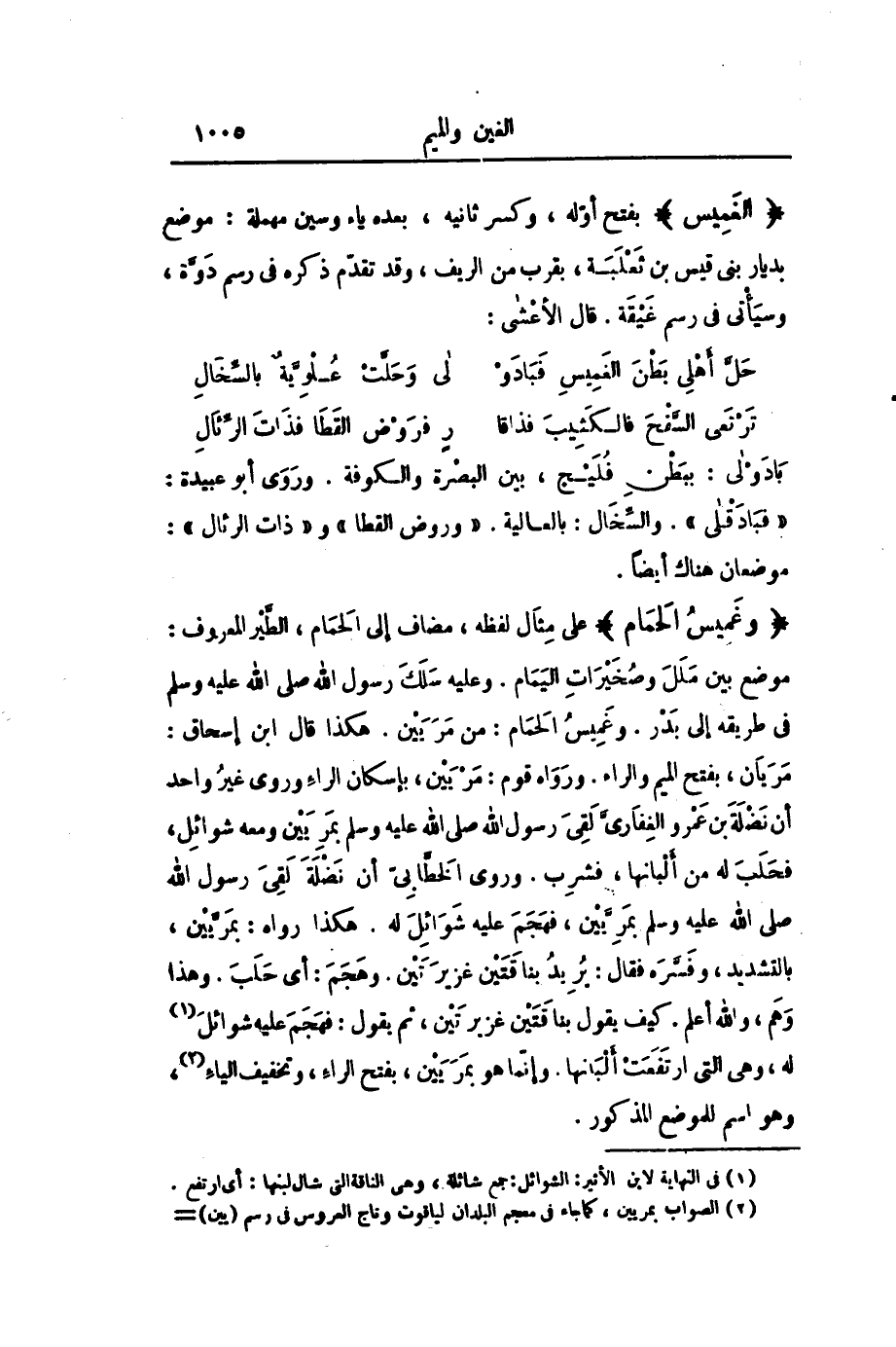 موضع بين ملل وصخيرات اليمام. وعليه سلك رسول الله صلى الله عليه وسلم فى طريقه إلى بدر. وغميس الحمام: من مريين. هكذا قال ابن إسحاق: