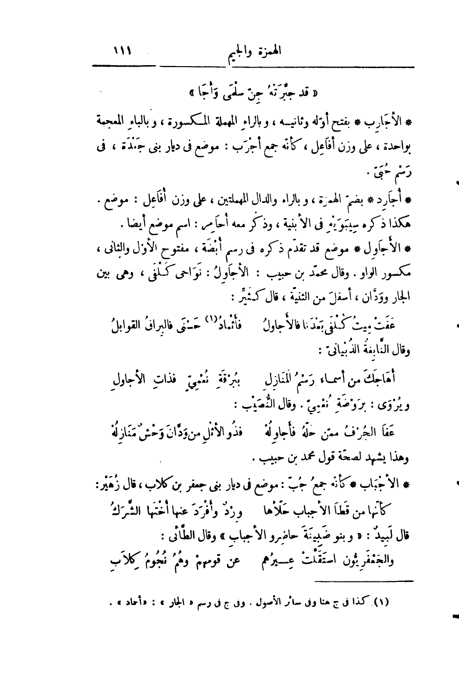 قال لبيد: «وبنو ضبينة حاضر والأجباب» وقال الطّائى: