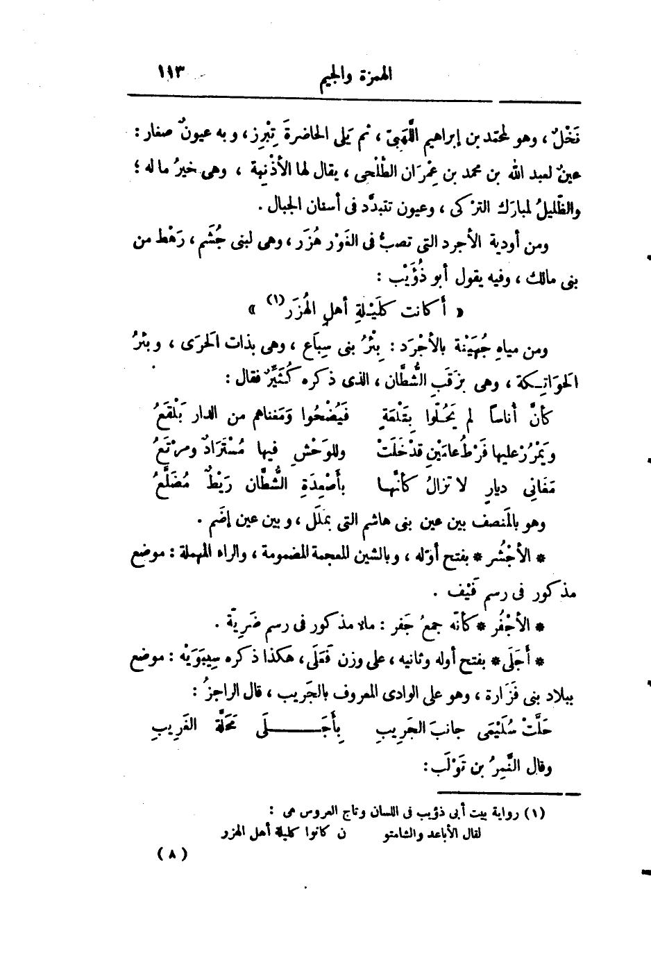 ومن أودية الأجرد التى تصبّ فى الغور هزر، وهى لبنى جشم، رهط من بنى مالك، وفيه يقول أبو ذؤيب: