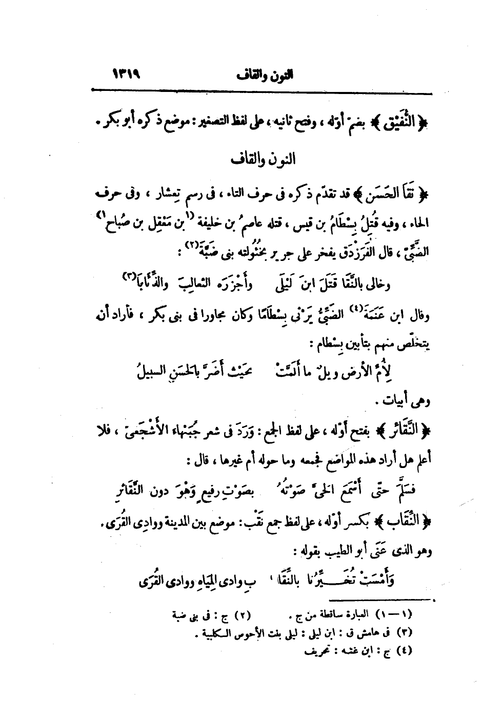 وخالى بالنّقا قتل ابن ليلى ... وأجزره الثعالب والذّئابا «3»