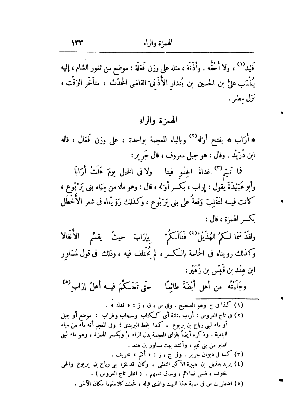 وأبو عبيدة يقول: إراب، بكسر أوّله، قال: وهو ماء من مياه بنى يربوع، كانت فيه لتغلب وقعة على بنى يربوع، وكذلك رويناه فى شعر الأخطل بكسر الهمزة، قال:
