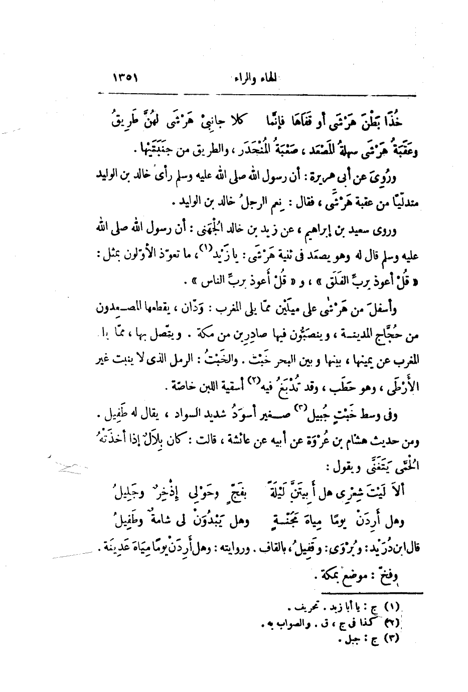 ألا ليت شعرى هل أبيتنّ ليلة ... بفجّ وحولى إذخر وجليل