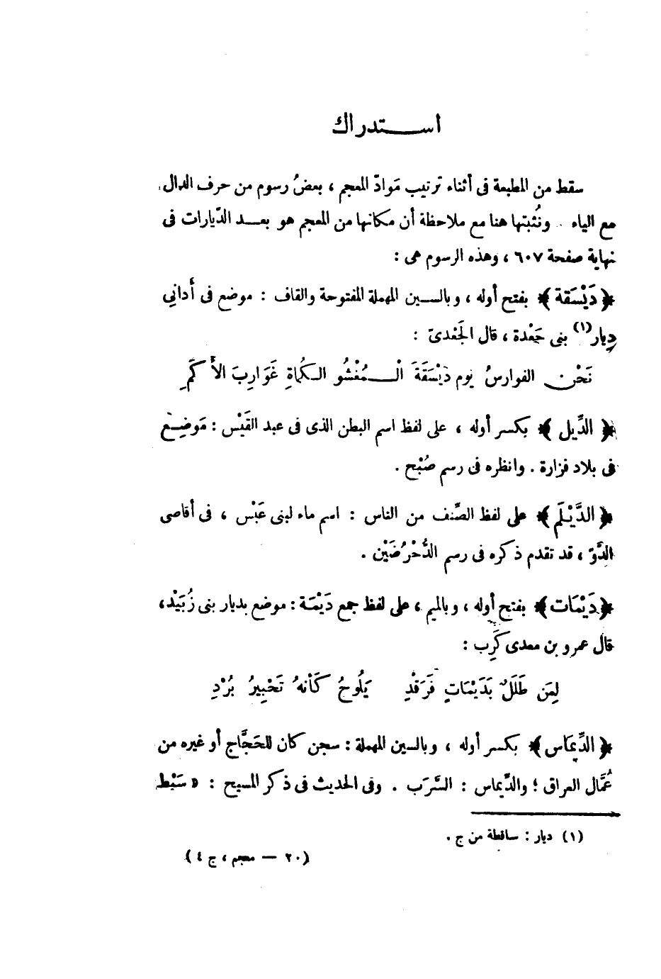 سقط من المطبعة فى أثناء ترتيب موادّ المعجم، بعض رسوم من حرف الدال مع الياء. ونثبتها هنا مع ملاحظة أن مكانها من المعجم هو بعد الدّيارات فى نهاية صفحة 607، وهذه الرسوم هى: