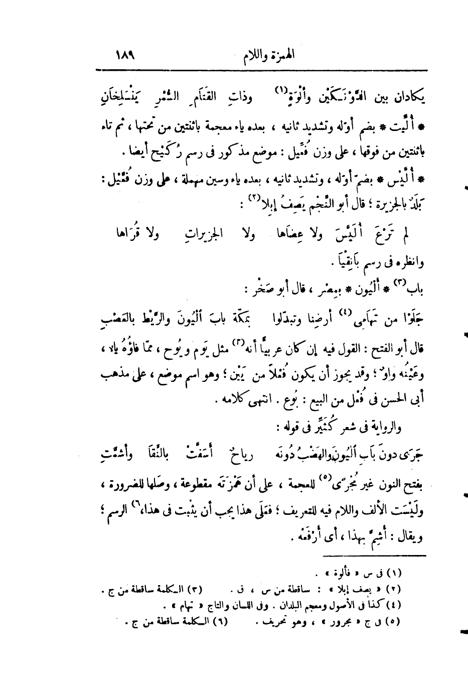 بفتح النون غير مجرى «6» للعجمة، على أن همزته مقطوعة، وصلها للضرورة، وليست الألف واللام فيه للتعريف؛ فعلى هذا يجب أن يثبت فى هذا، «7» الرسم؛ ويقال: أشمّ بهذا، أى أرفعه.