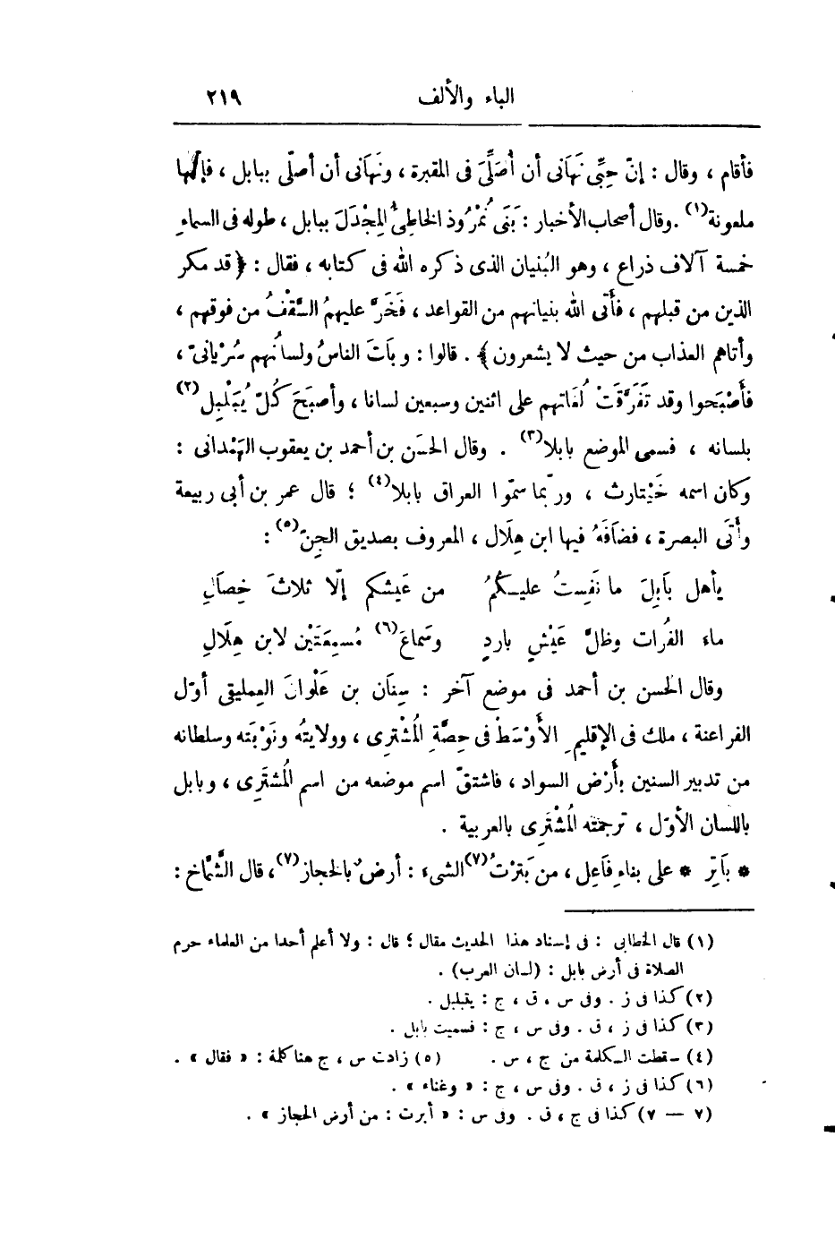 . قالوا: وبات الناس ولسانهم سريانىّ، فأصبحوا وقد تفرّقت لغاتهم على اثنين وسبعين لسانا، وأصبح كلّ يبلبل «2» بلسانه، فسمى الموضع بابلا «3» . وقال الحسن بن أحمد بن يعقوب الهمدانى: