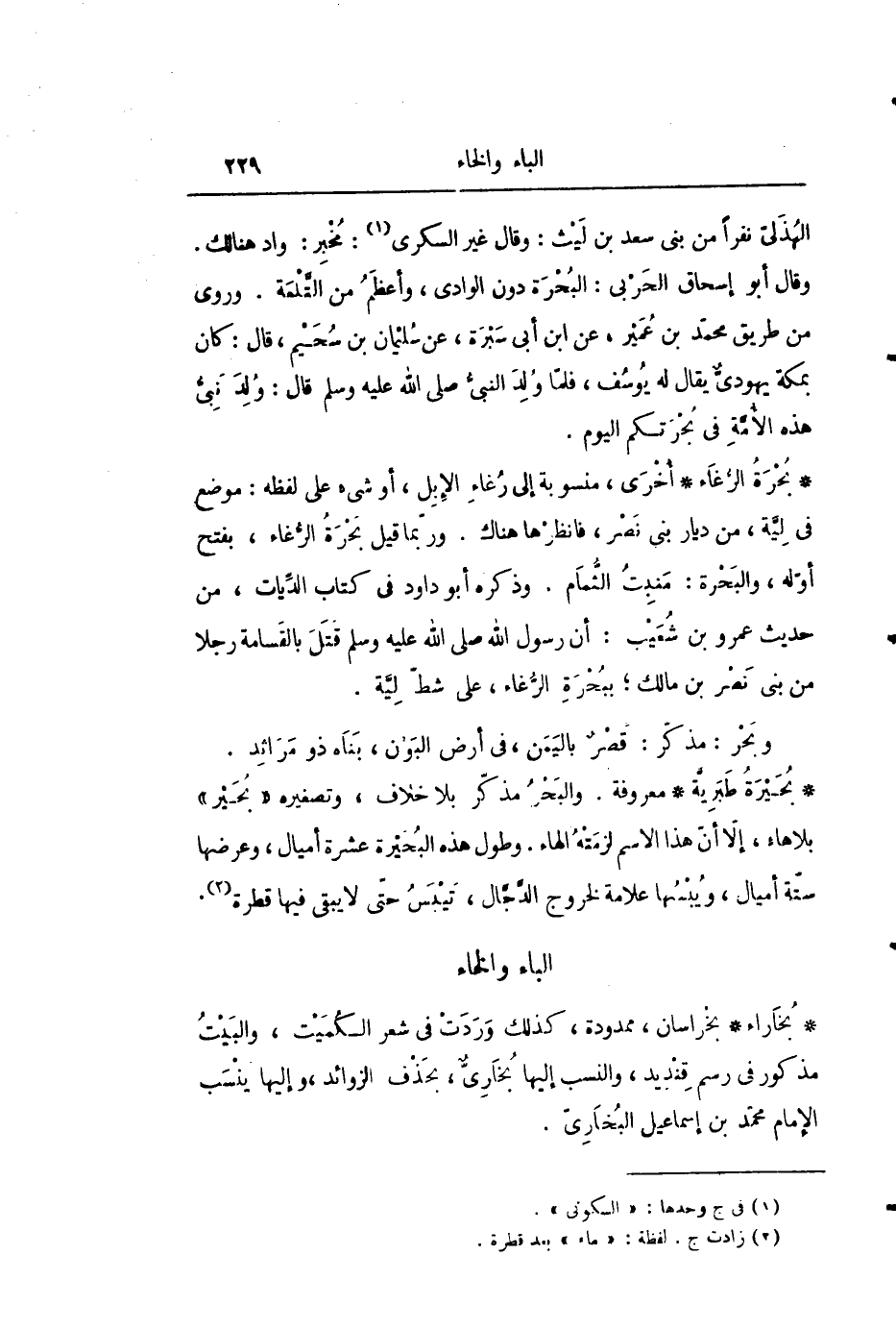 وقال أبو إسحاق الحربى: البحرة دون الوادى، وأعظم من التّلعة. وروى من طريق محمّد بن عمير، عن ابن أبى سبرة، عن سليمان بن سحيم، قال: كان بمكة يهودىّ يقال له يوسف، فلمّا ولد النّبيّ صلى الله عليه وسلم قال: ولد نبىّ هذه الأمّة فى بحرتكم اليوم.