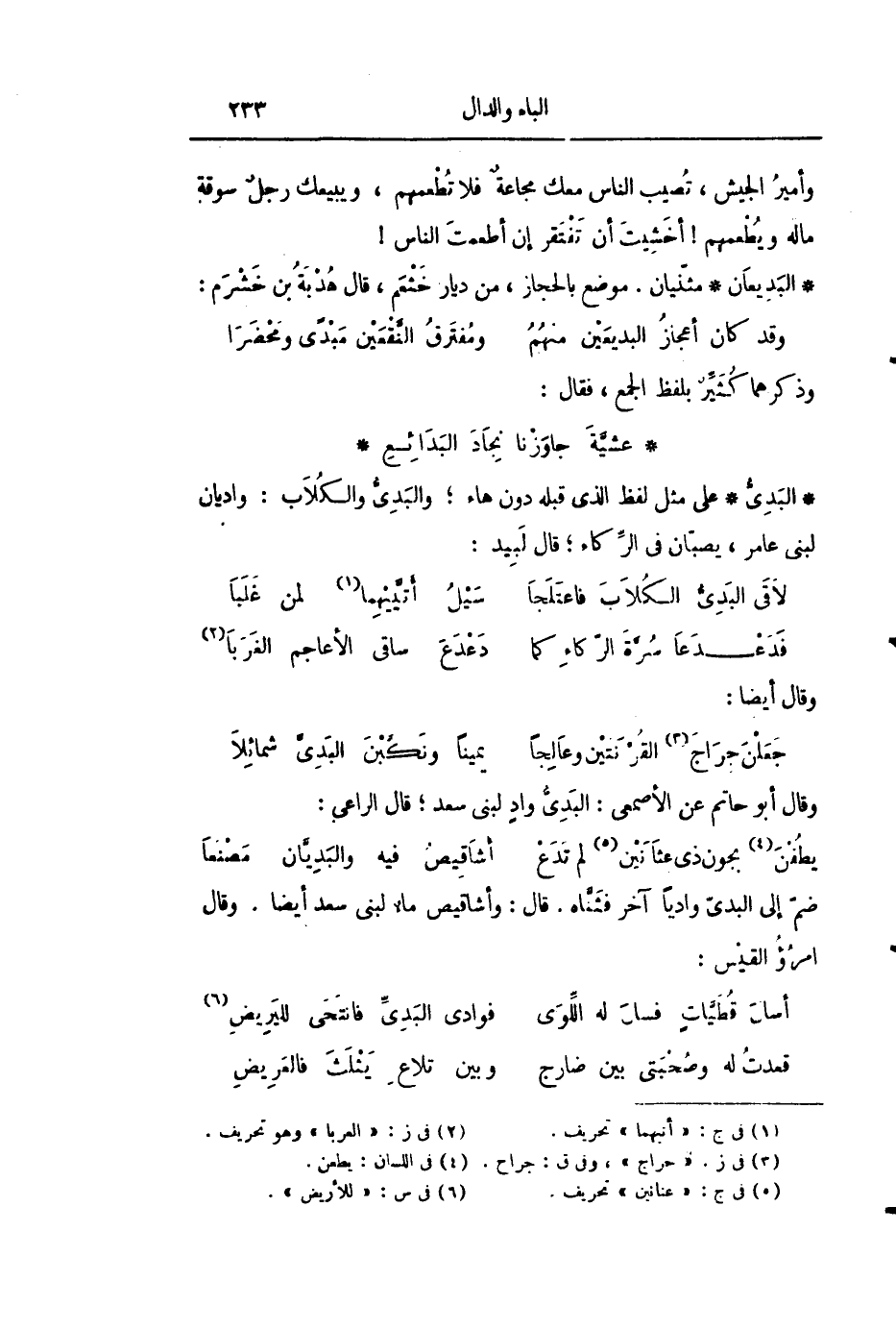على مثل لفظ الذي قبله دون هاء؛ والبدىّ والكلاب: واديان لبنى عامر، يصبّان فى الرّكاء؛ قال لبيد: