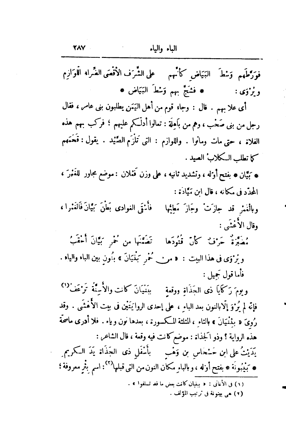 فإنّه لم يرو إلّا بالنون بعد الباء، على إحدى الروايتين فى بيت الأعشى. وقد روى «بثنيان» بالثاء، المثلثة المكسورة، بعدها نون وياء. فلا أدرى ما صحّة هذه الرواية؟ وذو الجذاة: موضع كانت فيه وقعة، قال الشاعر:
