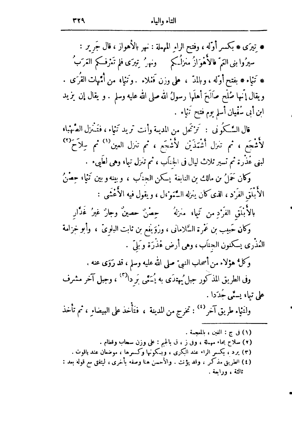قال السّكونى: ترتحل من المدينة وأنت تريد تيماء، فتنزل الصّهباء لأشجع، ثم تنزل أشمذين لأشجع، ثم تنزل العين «1» ثم سلاح «2» لبنى عذرة ثم تسير ثلاث ليال فى الجناب، ثم تنزل تيماء وهى لطيىء.