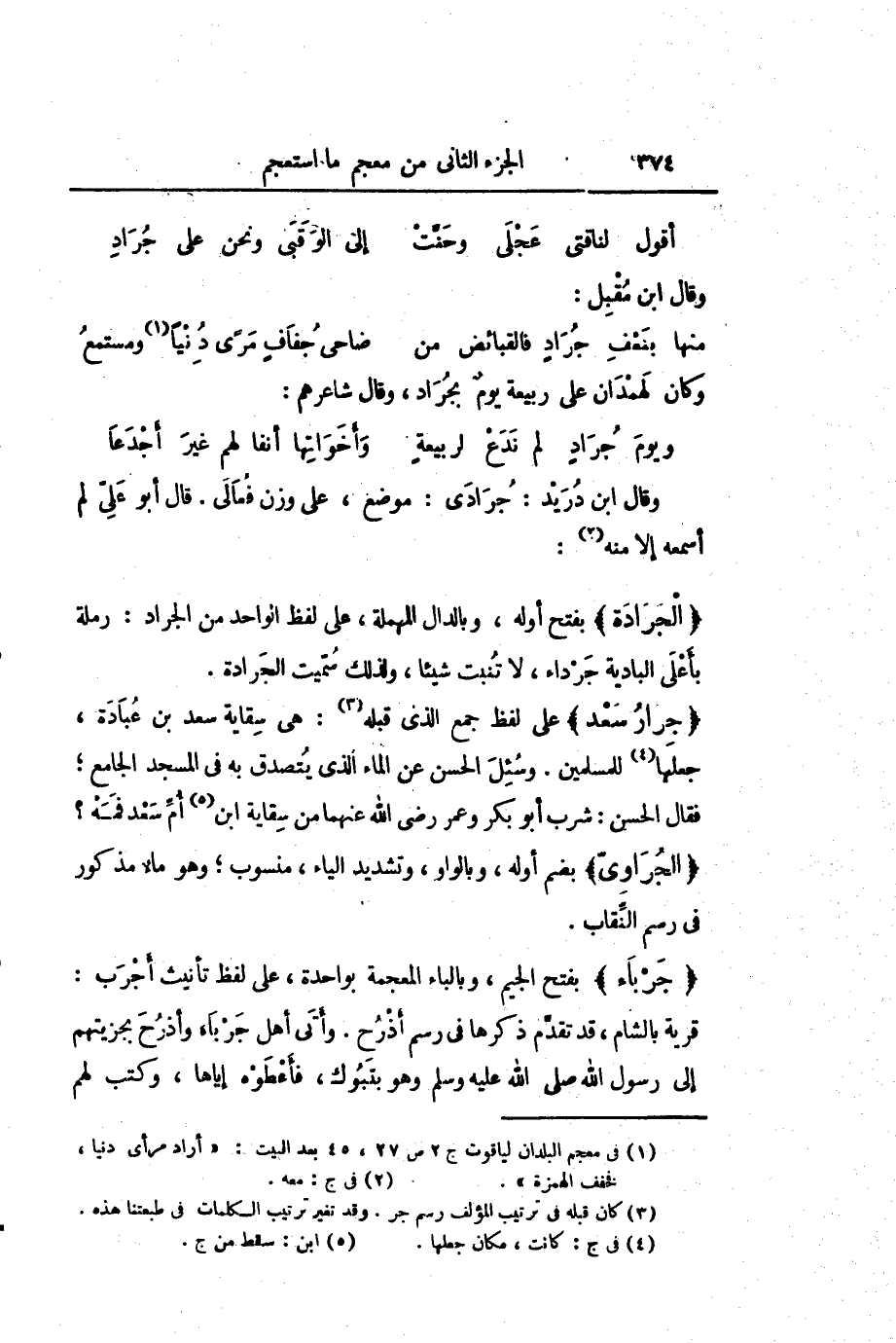 وقال ابن دريد: جرادى: موضع، على وزن فعالى. قال أبو علىّ لم أسمعه إلا منه «2» :