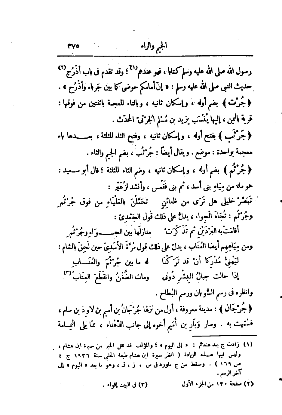 رسول الله صلى الله عليه وسلم كتابا، فهو عندهم «1» ؛ وقد تقدم فى باب أذرج «2» حديث النبي صلى الله عليه وسلم: «إنّ أمامكم حوضى كما بين جرباء وأذرح» .