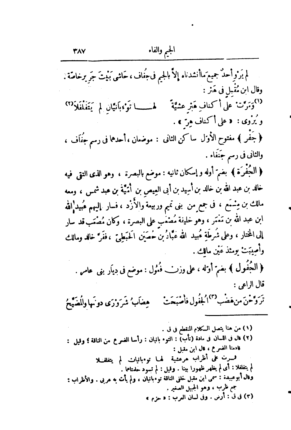 مفتوح الأوّل ساكن الثانى: موضعان، أحدهما فى رسم جفاف، والثانى فى رسم جنفاء.