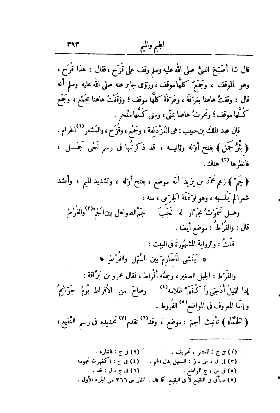 قال لمّا أصبح النّبيّ صلى الله عليه وسلم وقف على قزح، فقال: هذا قزح، وهو الموقف، وجمع كلّها موقف، وروى جابر عنه صلى الله عليه وسلم أنه قال: وقفت هاهنا بعرفة، وعرفة كلّها موقف؛ ووقفت هاهنا بجمع، وجمع كلّها موقف؛ ونحرت هاهنا بمنى، ومنى كلّها منحر.
