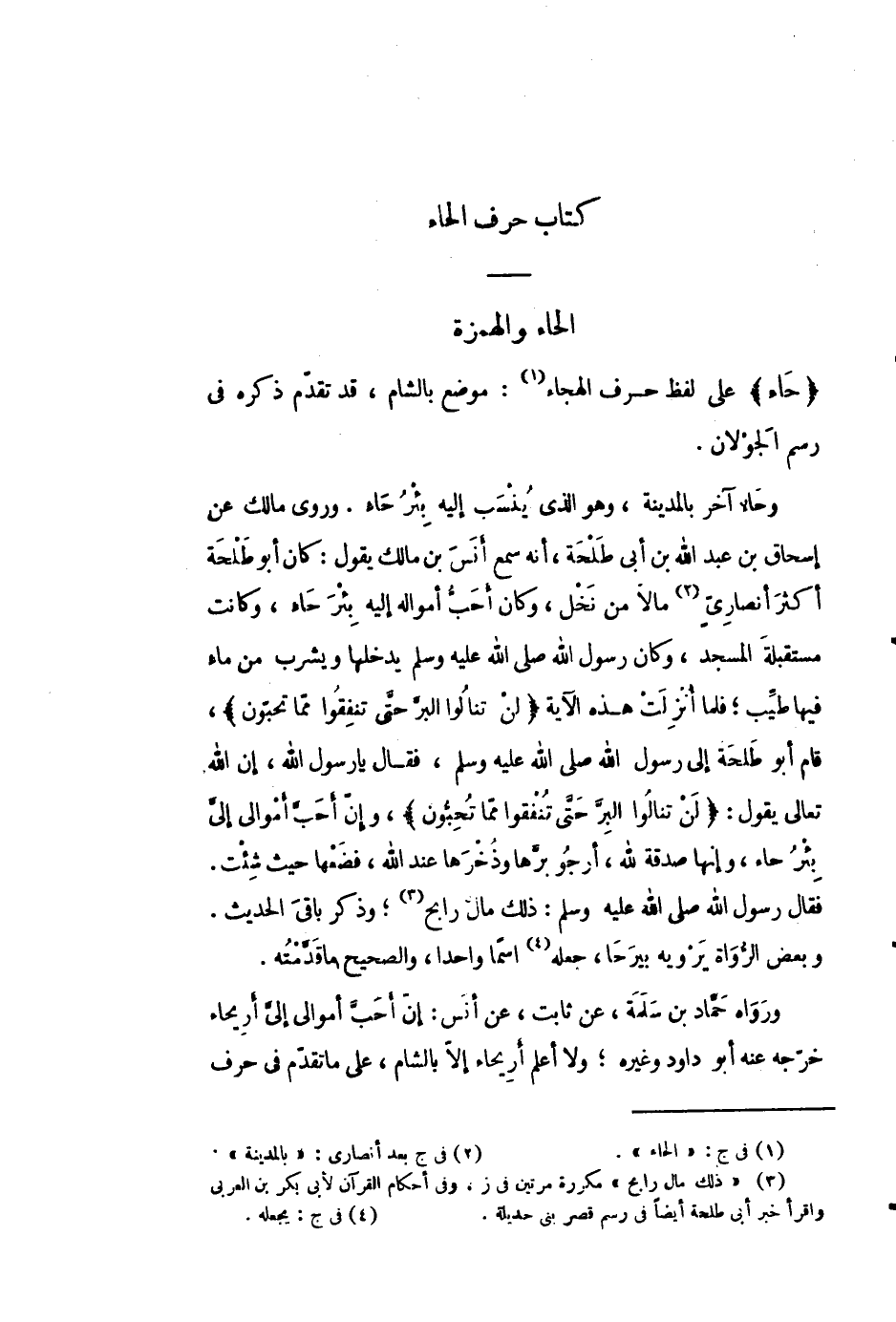 ورواه حمّاد بن سلمة، عن ثابت، عن أنس: إنّ أحبّ أموالى إلىّ أريحاء خرّجه عنه أبو داود وغيره؛ ولا أعلم أريحاء إلّا بالشام، على ما تقدّم فى حرف