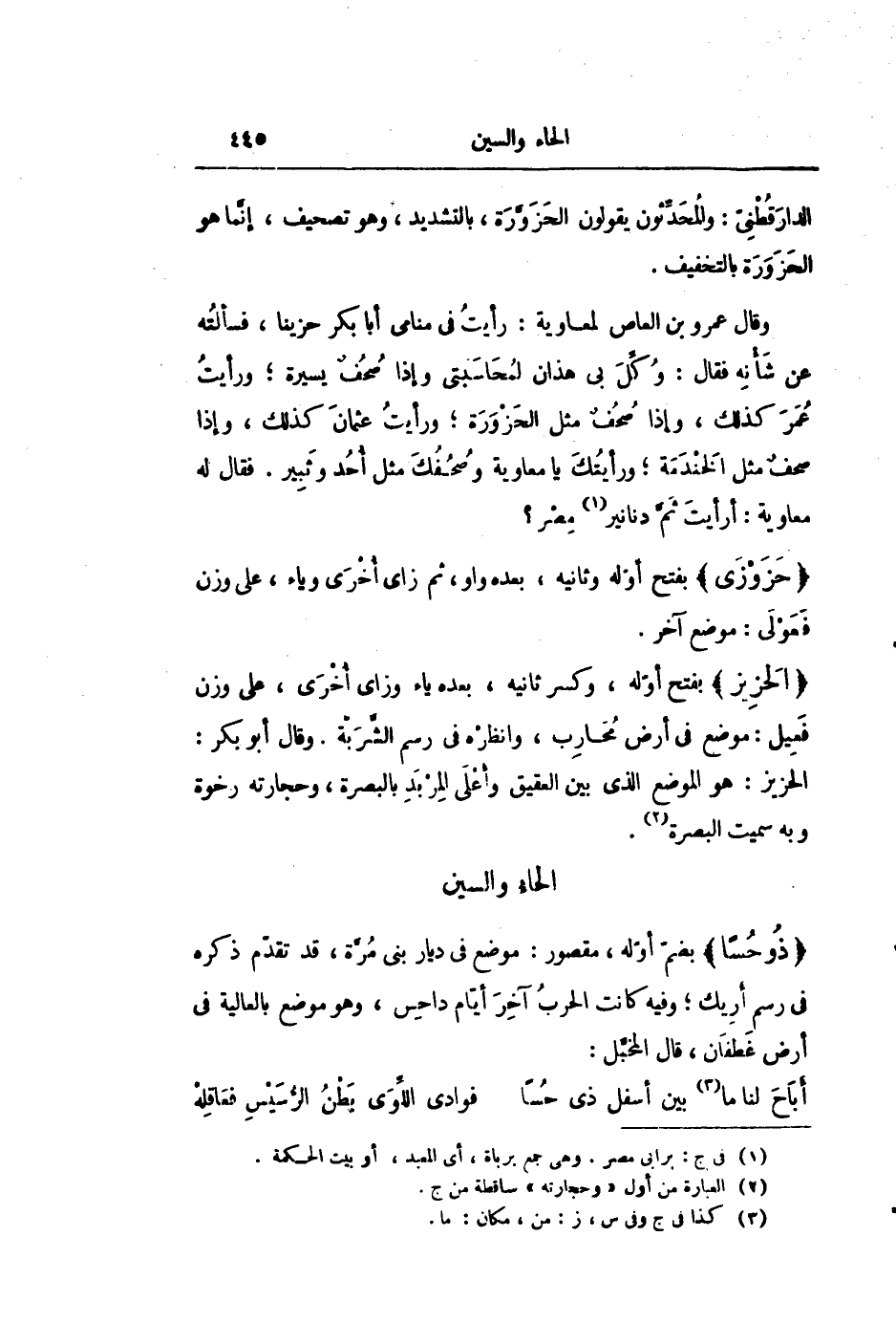 الدار قطنىّ: والمحدّثون يقولون الحزوّرة، بالتشديد، وهو تصحيف، إنّما هو الحزورة بالتخفيف.
