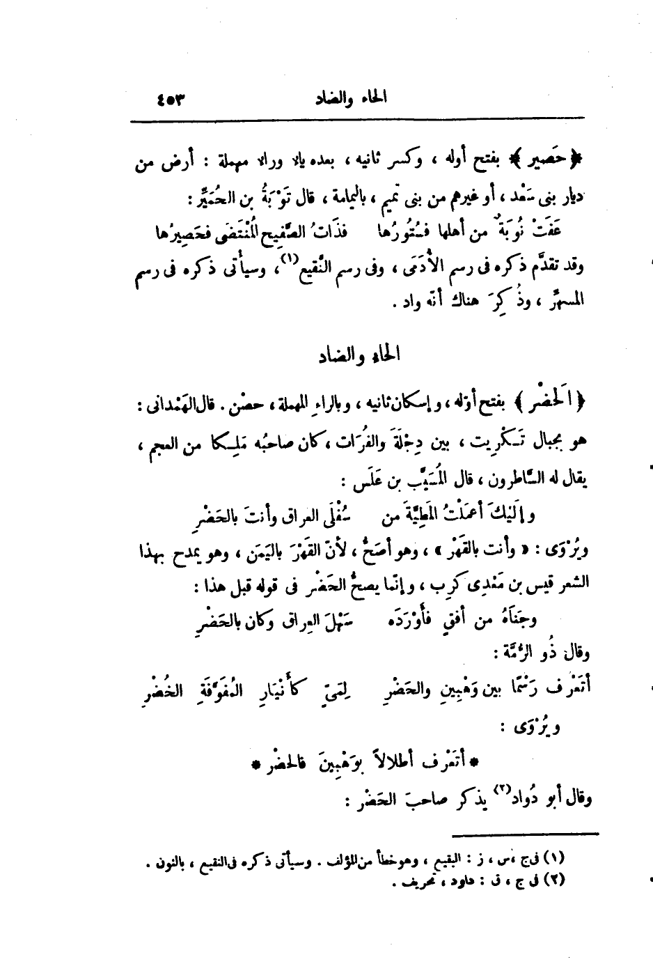ويروى: «وأنت بالقهر» ، وهو أصحّ، لأنّ القهر باليمن، وهو يمدح بهذا الشعر قيس بن معدى كرب، وإنّما يصحّ الحضر فى قوله قبل هذا: