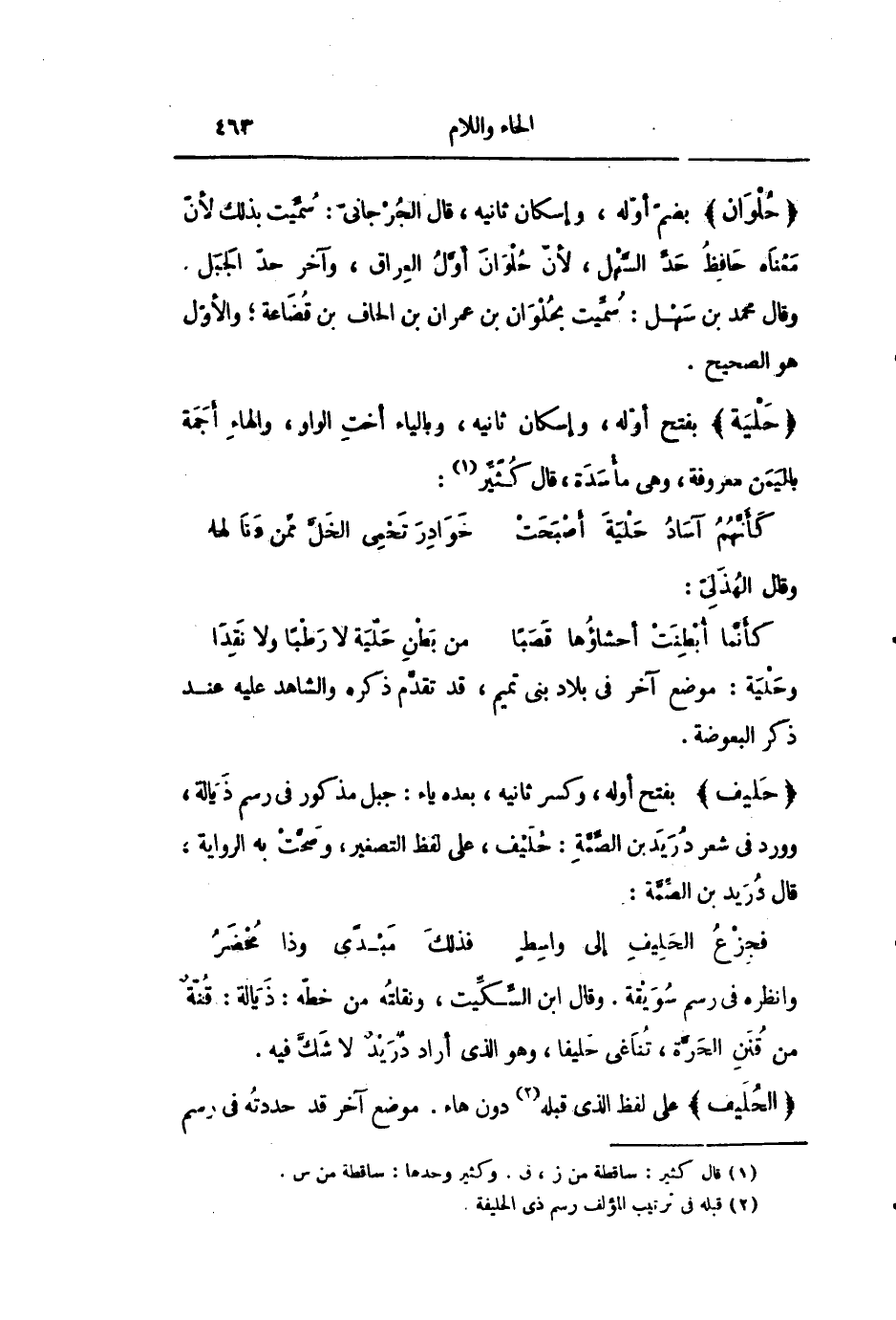 بفتح أوله، وكسر ثانيه، بعده ياء: جبل مذكور فى رسم ذيالة، وورد فى شعر دريد بن الصّمّة: حليف، على لفظ التصغير، وصحّت به الرواية، قال دريد بن الصّمّة: