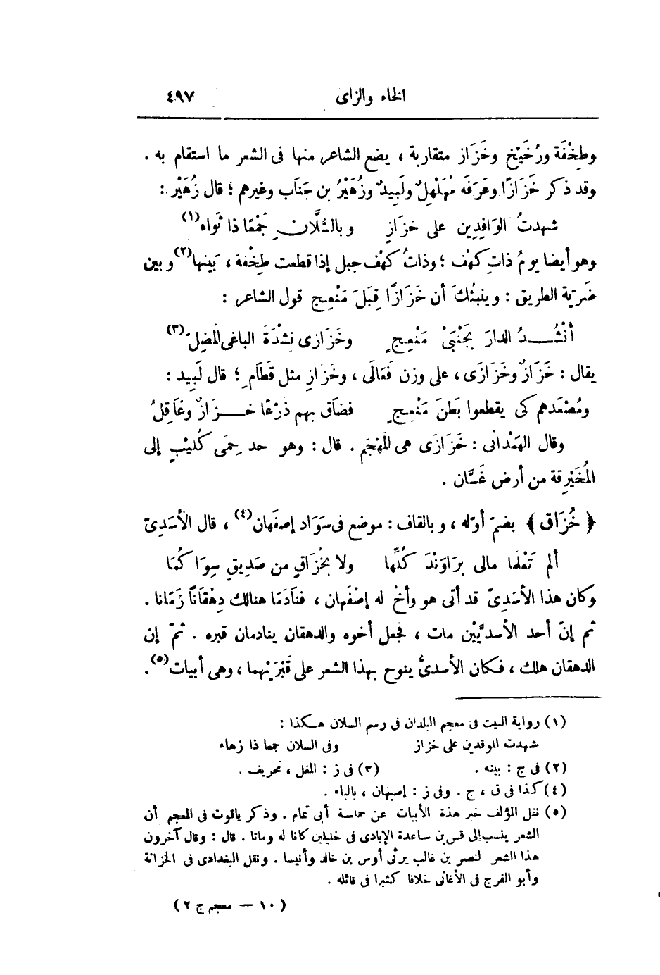 وقال الهمدانى: خزازى هى المهجم. قال: وهو حد حمى كليب إلى المخيرقة من أرض غسّان.