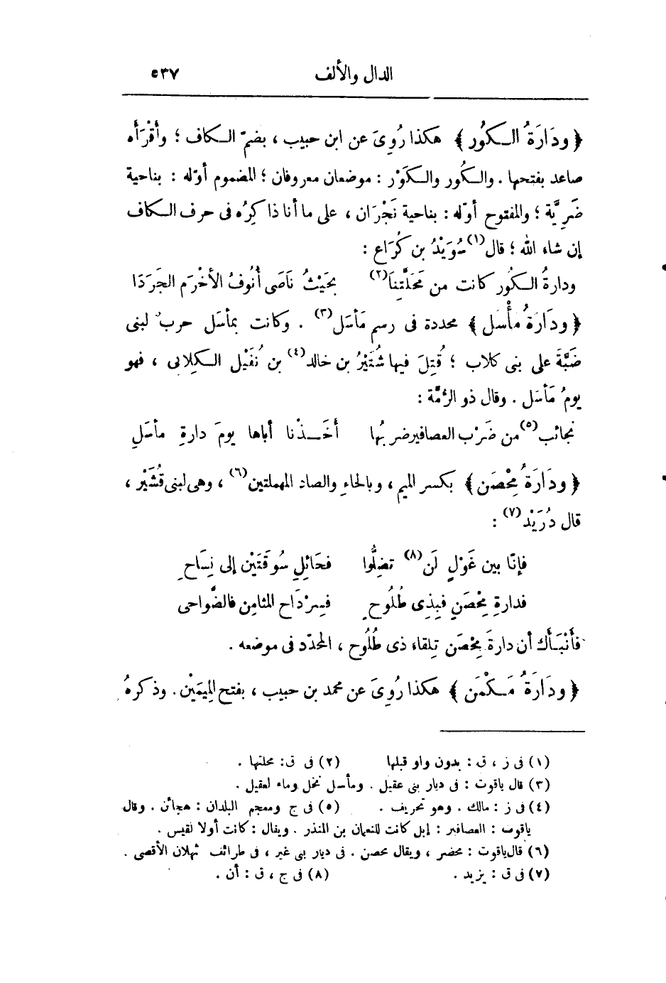محددة فى رسم مأسل «3» . وكانت بمأسل حرب لبنى ضبّة على بنى كلاب؛ قتل فيها شتير بن خالد «4» بن نفيل الكلابى، فهو يوم مأسل. وقال ذو الرّمّة: