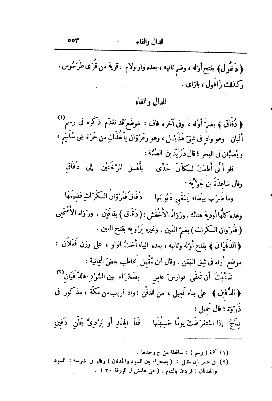 وهذه كلّها أودية هناك. ورواه الأخفش: (دقاق) بقافين. ورواه الأصمعى (فعروان الكراث) بضمّ العين. وغيره يرويه بفتح العين.