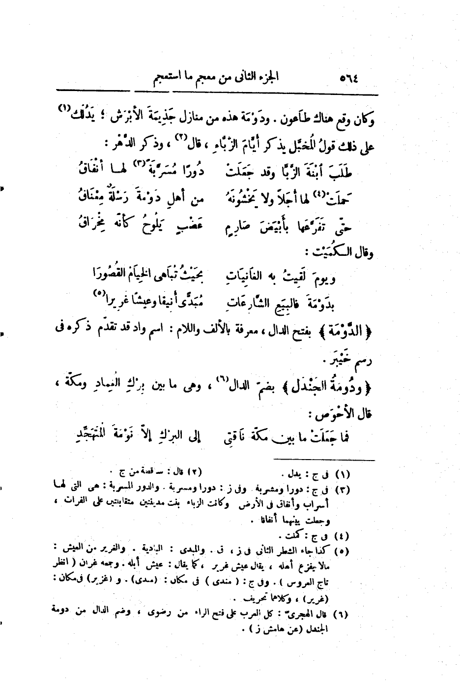 وكان وقع هناك طاعون. ودومة هذه من منازل جذيمة الأبرش؛ يدلك «1» على ذلك قول المخبّل يذكر أيّام الزّبّاء، قال «2» ، وذكر الدّهر: