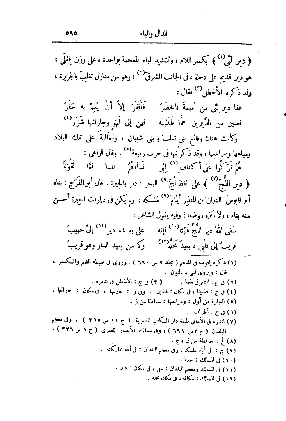 سقى الله دير اللّجّ غيثا «10» فإنه ... على بعده دير «11» إلىّ حبيب