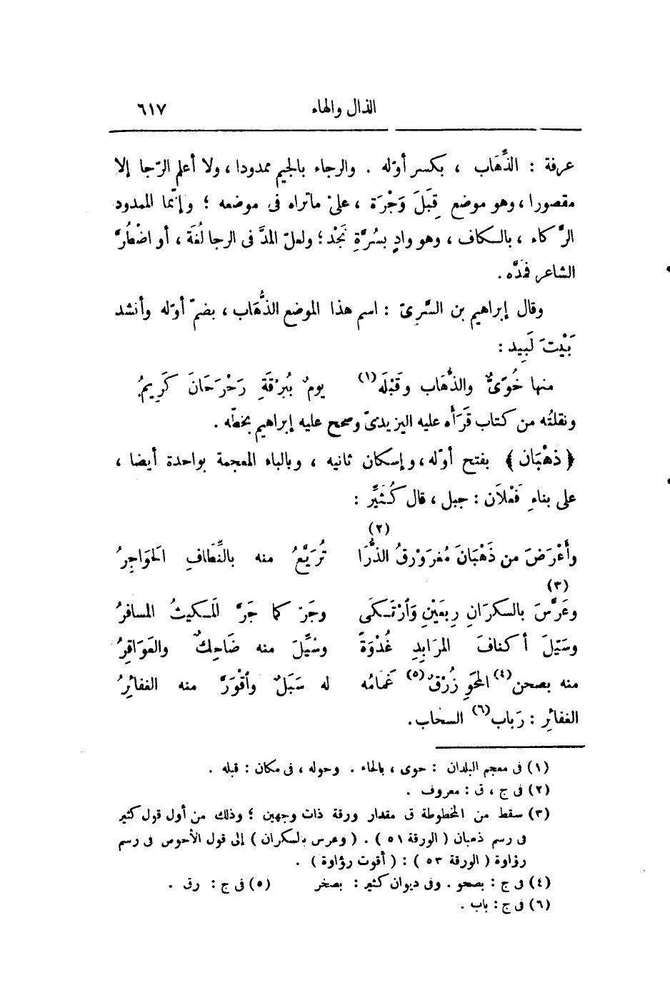 وقال إبراهيم بن السّرىّ: اسم هذا الموضع الذّهاب، بضمّ أوّله وأنشد بيت لبيد: