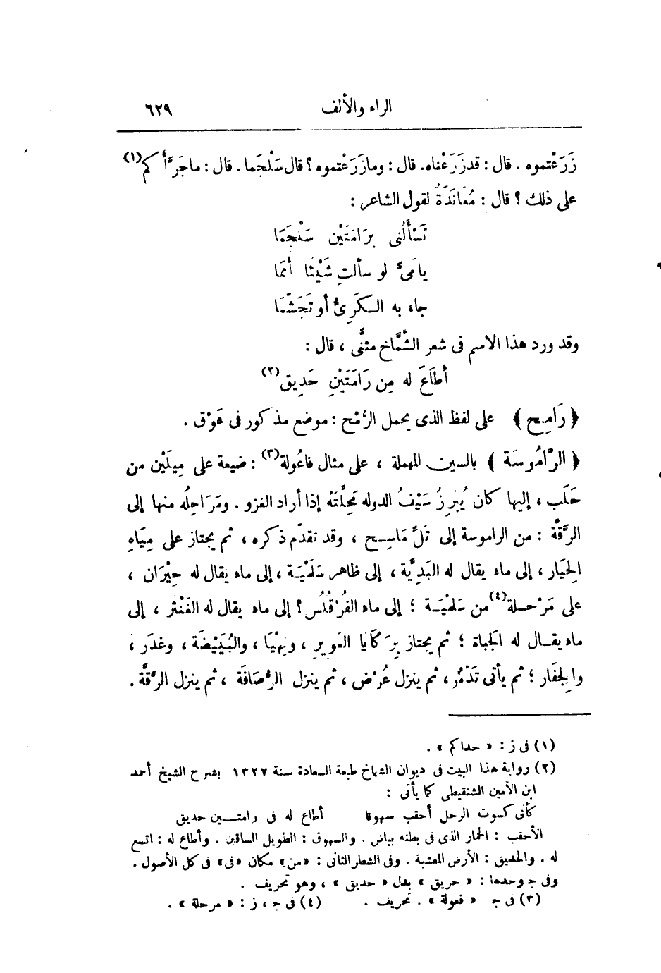 بالسين المهملة، على مثال فاعولة «3» : ضيعة على ميلين من حلب، إليها كان يبرز سيف الدوله محلّته إذا أراد الغزو. ومراحله منها إلى الرّقّة: من الراموسة إلى تلّ ماسح، وقد تقدّم ذكره، ثم يجتاز على مياه الحيار، إلى ماء يقال له البديّة، إلى ظاهر سلمية، إلى ماء يقال له حيران، على مرحلة «4» من سلمية؛ إلى ماء الفرقلس؟ إلى ماء يقال له الغنثر، إلى ماء يقال له الجباة؛ ثم يجتاز بركايا العوير، ونهيا، والبيضة، وغدر، والجفار؛ ثم يأتى تدمر، ثم ينزل عرض، ثم ينزل الرّصافة، ثم ينزل الرّقّة.