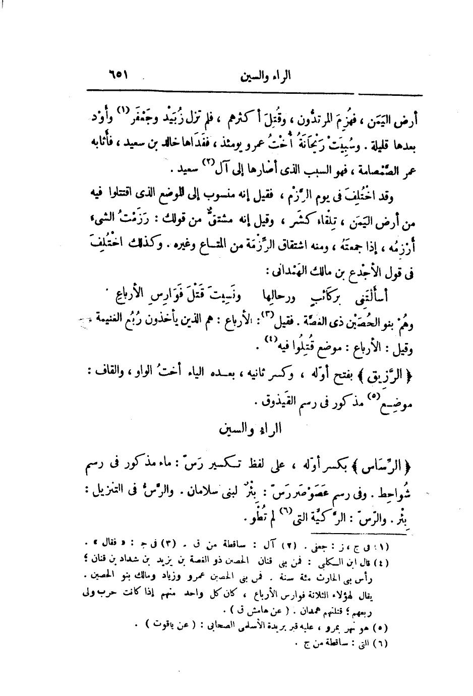 وقد اختلف فى يوم الرّزم، فقيل إنه منسوب إلى الموضع الذي اقتتلوا فيه من أرض اليمن، تلقاء كشر، وقيل إنه مشتقّ من قولك: رزمت الشيء أرزمه، إذا جمعته، ومنه اشتقاق الرّزمة من المتاع وغيره. وكذلك اختلف فى قول الأجدع بن مالك الهمدانى: