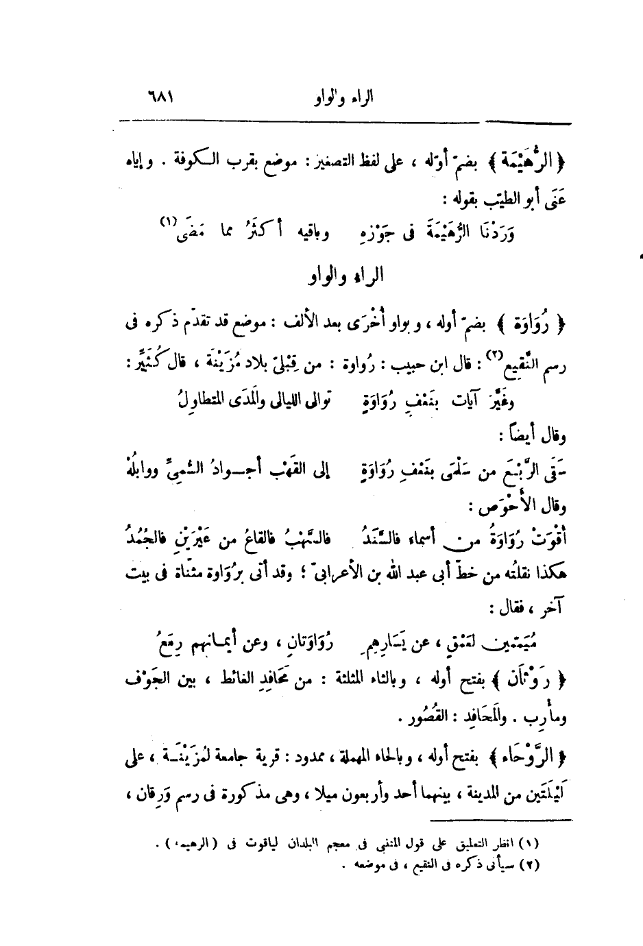 بضمّ أوله، وبواو أخرى بعد الألف: موضع قد تقدّم ذكره فى رسم النّقيع «2» : قال ابن حبيب: رواوة: من قبلىّ بلاد مزينة، قال كثيّر: