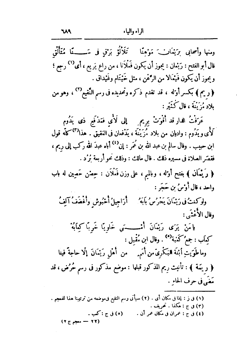 لأى ويدوم: واديان من بلاد مزينة، يدفعان فى العقيق. هذا «3» كلّه قول ابن حبيب. وقال سالم بن عبد الله بن عمر: إن «4» أباه عبد الله ركب إلى ريم، فقصر الصلاة فى مسيره ذلك. قال مالك: وذلك نحو أربعة برد.