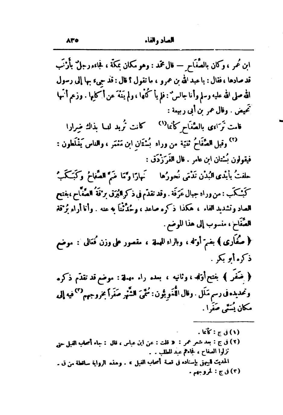 «2» وقيل الصّفاح ثنيّة من وراء بستان ابن معمر، والناس يغلطون: