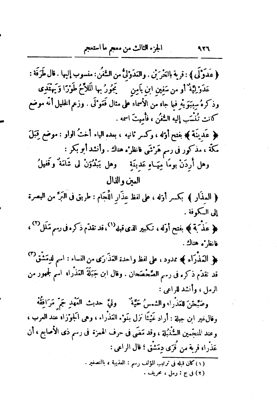 كتاب معجم ما استعجم من اسماء البلاد والمواضع (اسم الجزء: 3)