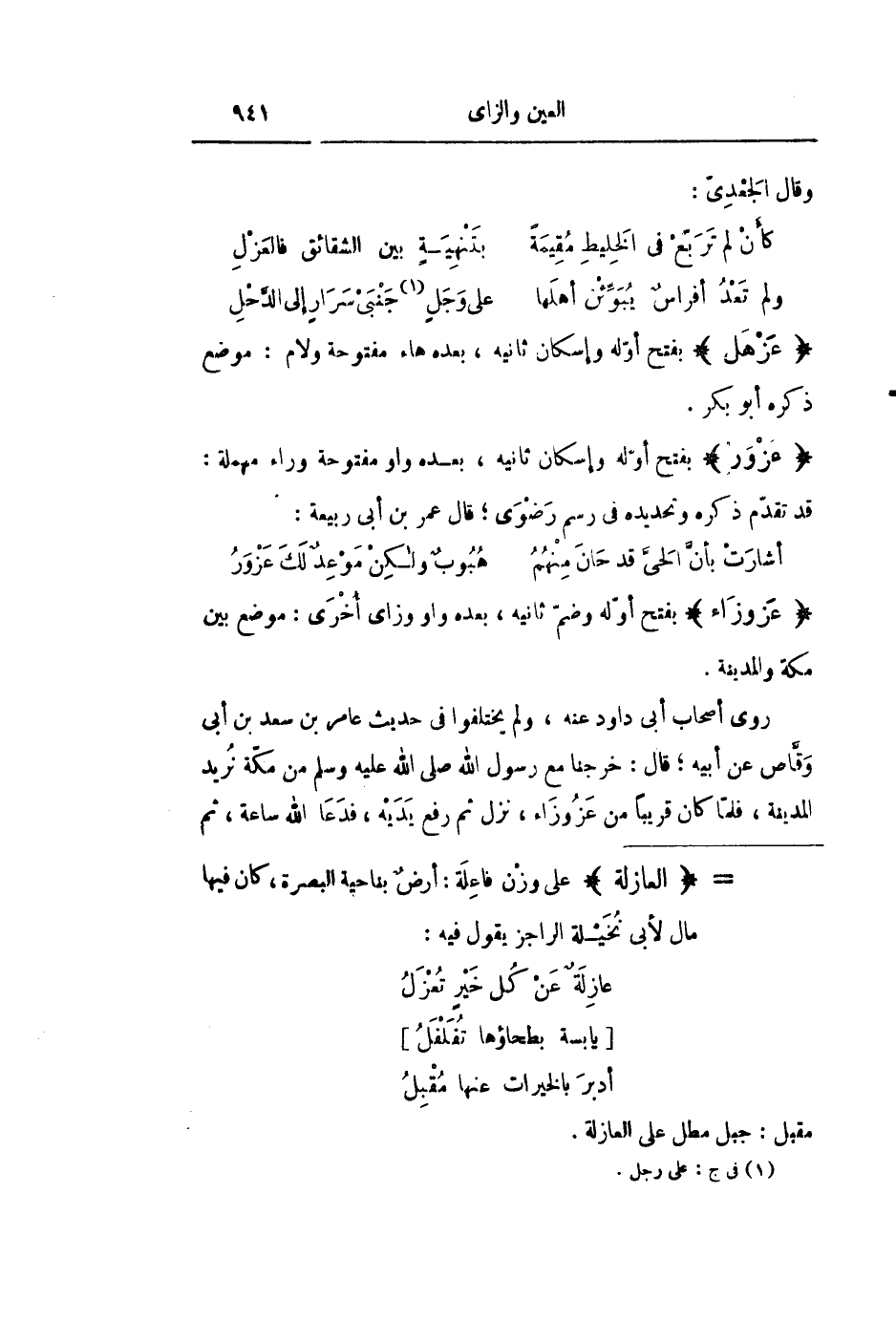 بفتح أوّله وضمّ ثانيه، بعده واو وزاى أخرى: موضع بين مكة والمدينة.
