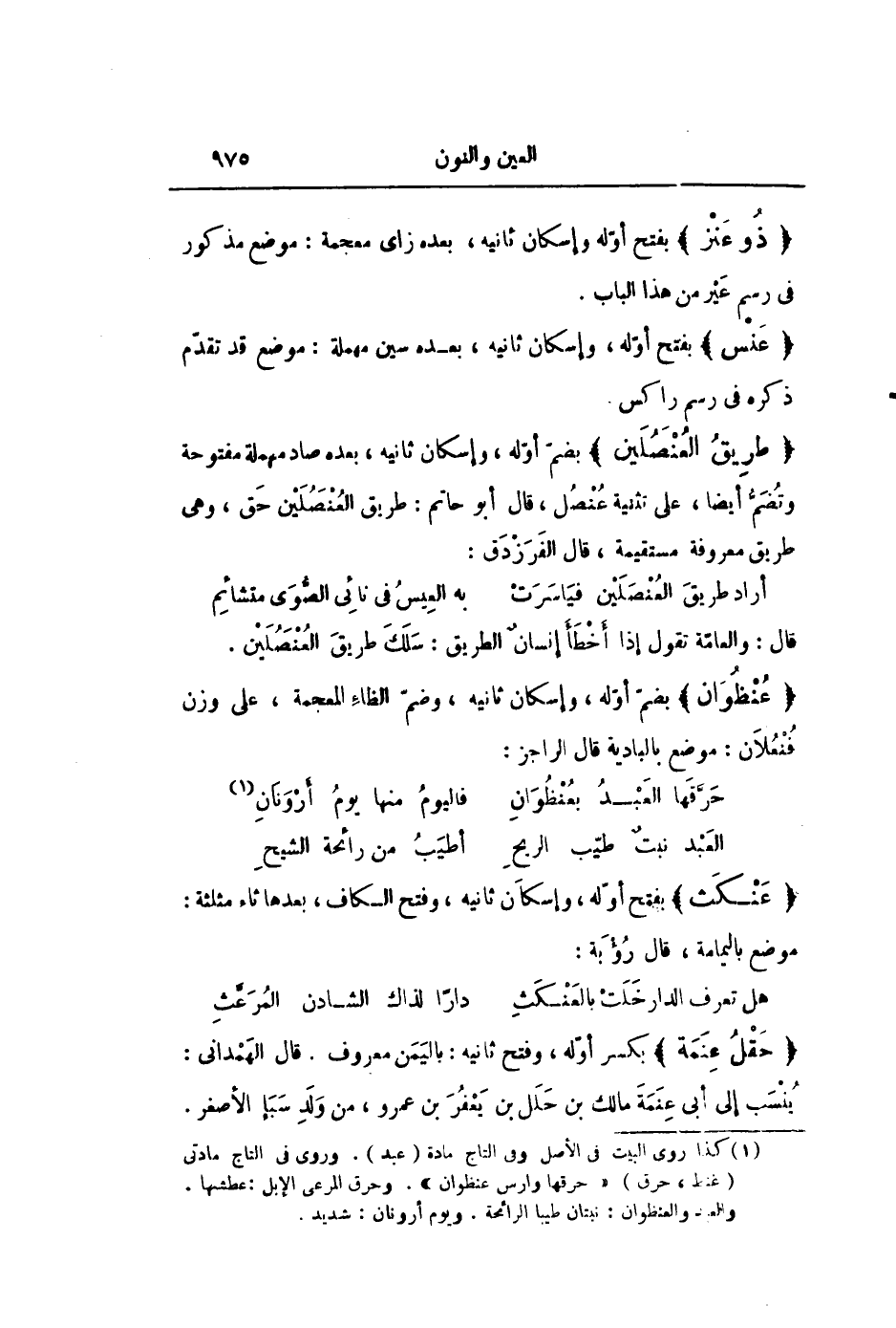 قال: والعامّة تقول إذا أخطأ إنسان الطريق: سلك طريق العنصلين.