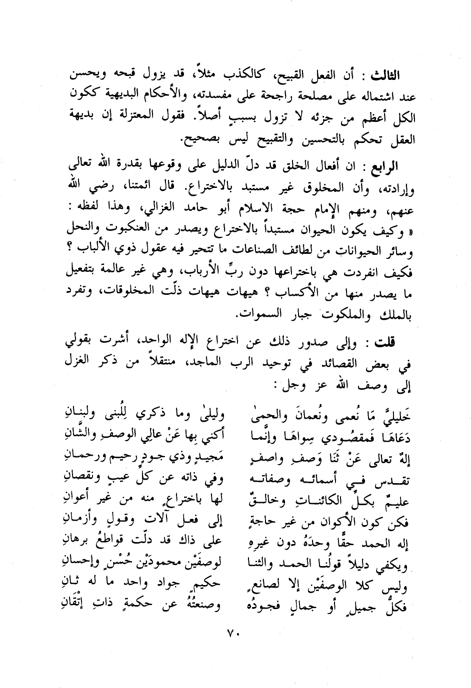قلت وَإِلَى صُدُور ذَلِك عَن اختراع الْإِلَه الْوَاحِد أَشرت بِقَوْلِي فِي بعض القصائد فِي تَوْحِيد الرب الْمَاجِد منتقلا من ذكر الْغَزل إِلَى وصف الله عز وَجل