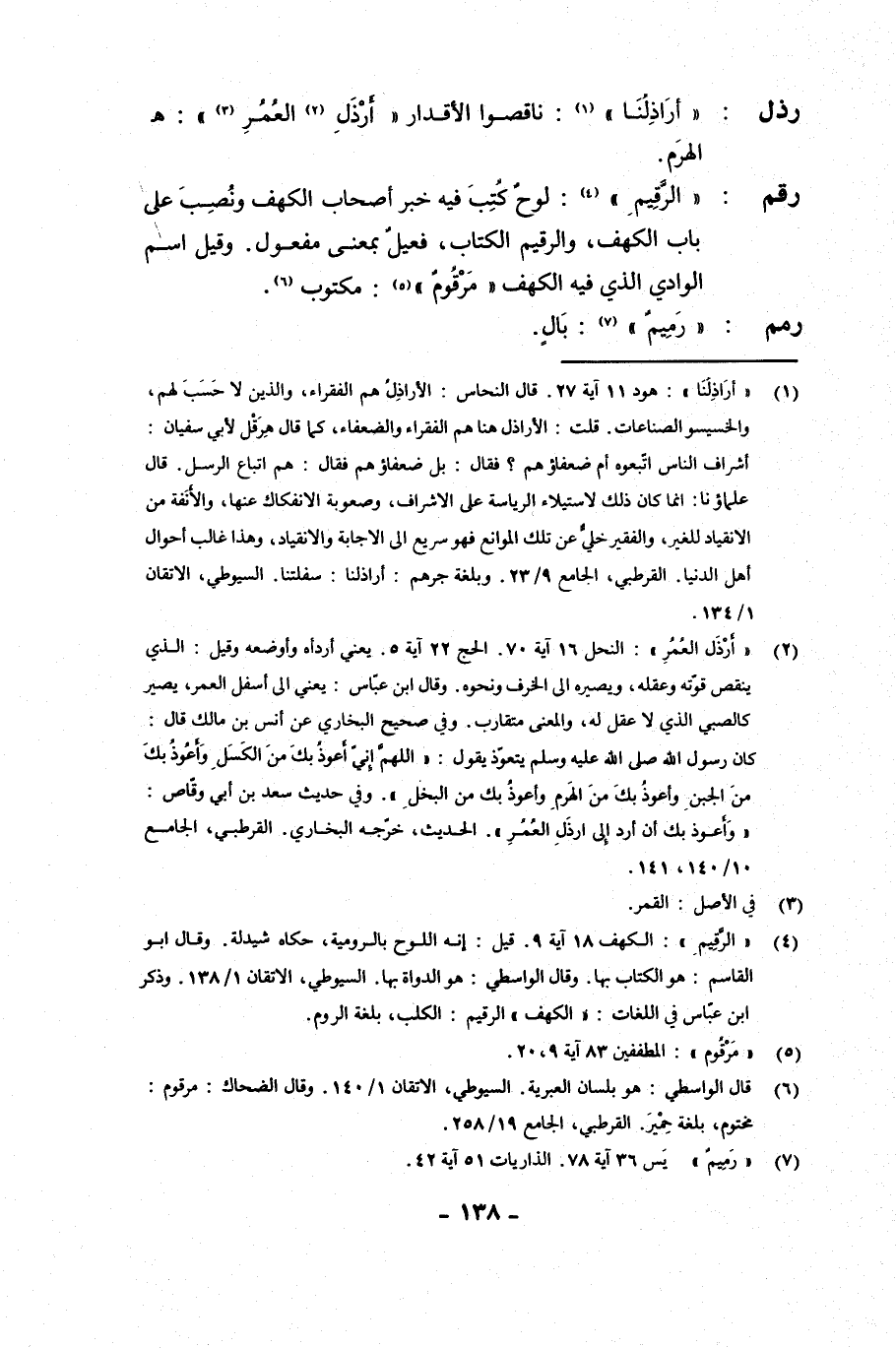 رقم: {الرقيم}: لوح كتب فيه خبر أصحاب الكهف ونُصب على باب الكهف، والرقيم الكتاب، فعيل بمعنى مفعول. وقيل: اسم الوادي الذي فيه الكهف، {مرقوم}: مكتوب.
