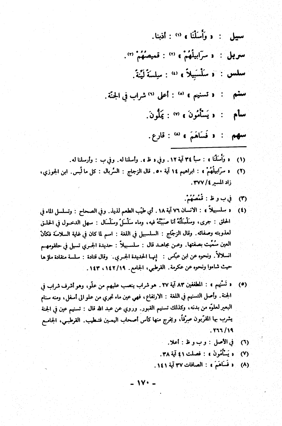 سنم: {تسنيم}: أعلى شراب في الجنة.