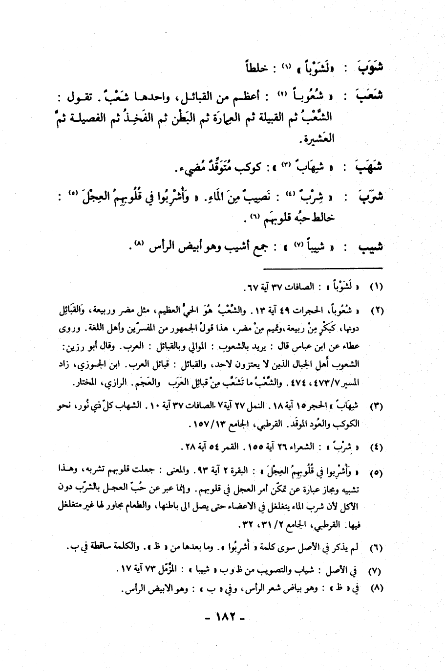 شرب: {شرب}: نصيب من الماء. {وأشربوا في قلوبهم العجل}: خالط حبه قلوبهم.